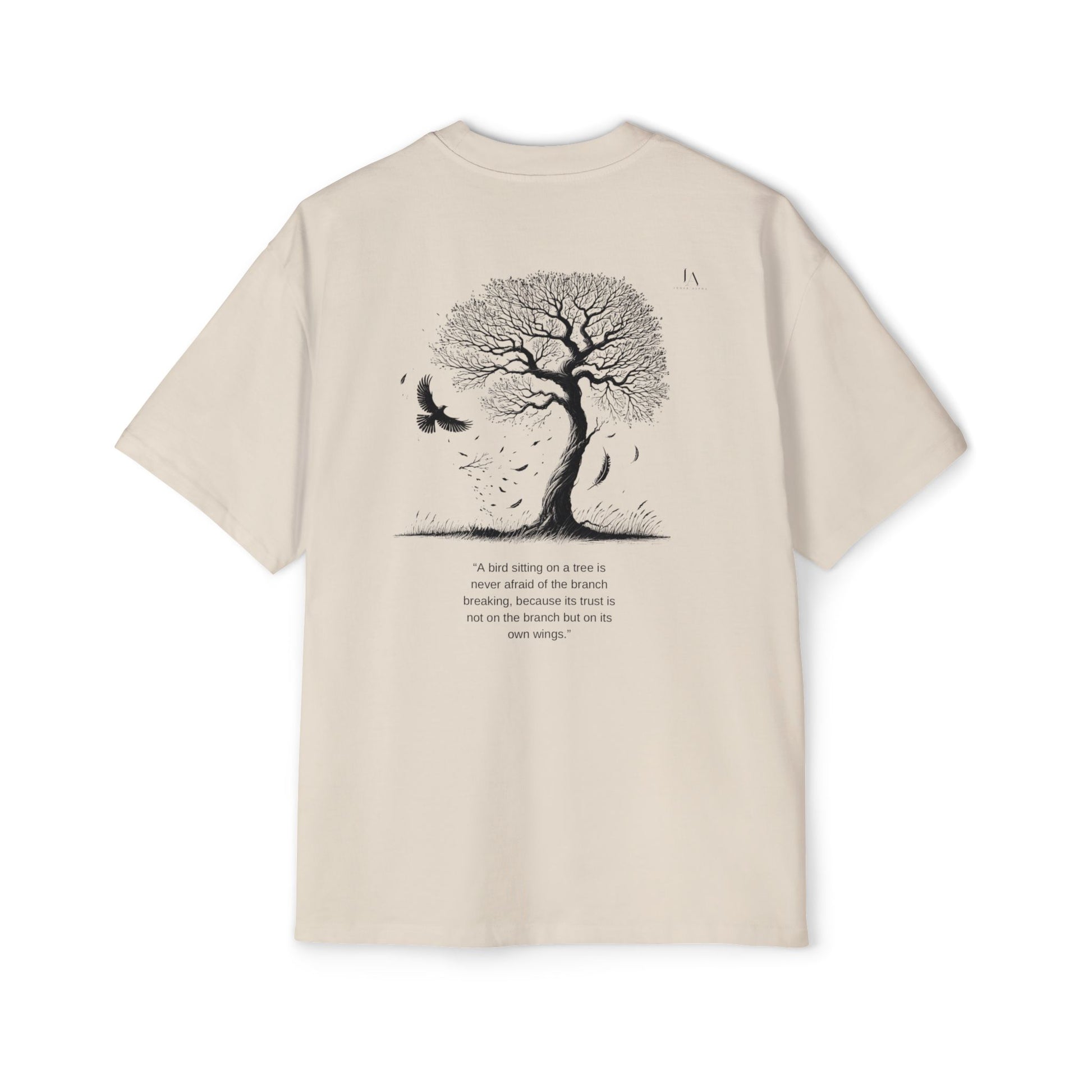 Trust Your Wings Oversized Tee displays as a relaxed and comfortable fit, perfect for casual everyday wear. Made for men, this oversized tee is ideal for those who appreciate a loose and roomy fit.